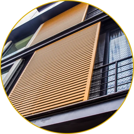 Perfeito para proporcionar sombra e controle da incidência solar em edifícios. Consiste em lâminas horizontais ou verticais instaladas externamente à fachada do edifício, geralmente feitas de materiais como alumínio, projetados de forma a bloquear a luz solar.