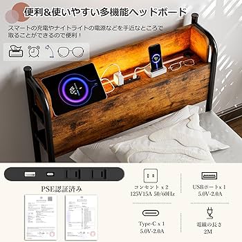 【R1355-130-35】ベッドフレーム シングル 2口コンセント USB充電 shop-ease_st-493cy461